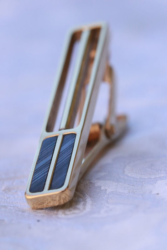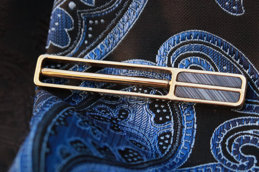 zirconium damascus 18k yellow gold tie clip